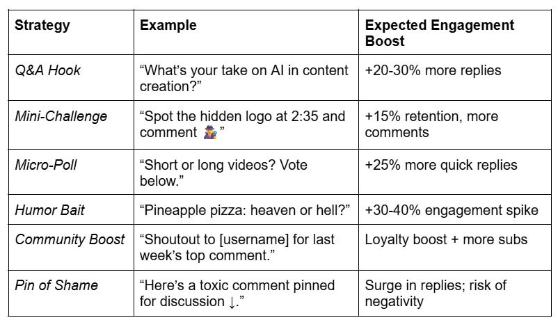 Gamification increases both retention and comments. This challenge-style pinned comment boosted engagement by over 20%.