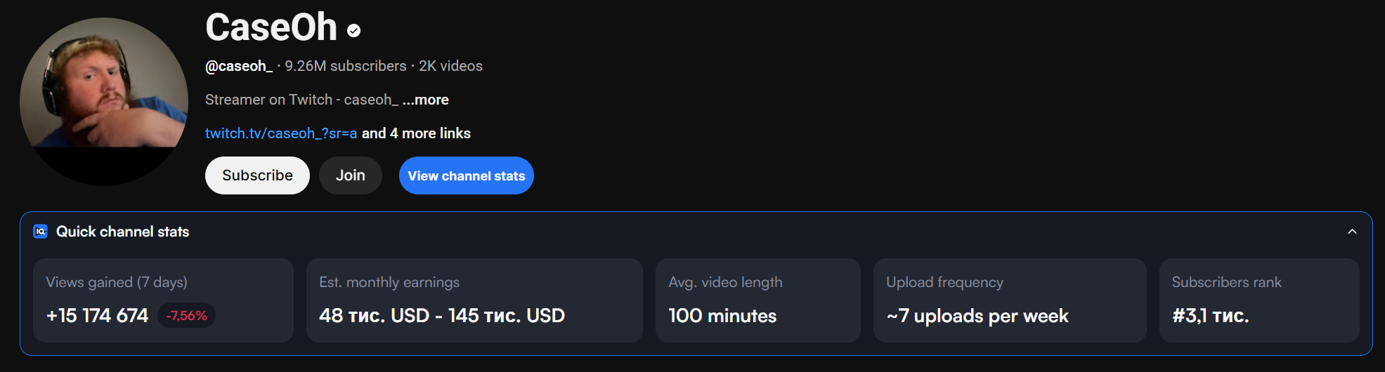 CaseOh, al igual que muchos creadores en estos ejemplos, comenzó en TikTok. Luego se mudó a Twitch y, eventualmente, YouTube. ¿Por qué su audiencia lo siguió? Su contenido no es, en absoluto, único. Sin embargo, cautivó a sus fanáticos con su personalidad, lo que garantizó su éxito posterior. Diversificar, en su caso, fue solo una elección lógica para expandir sus ingresos y reunir aún más fanáticos leales.