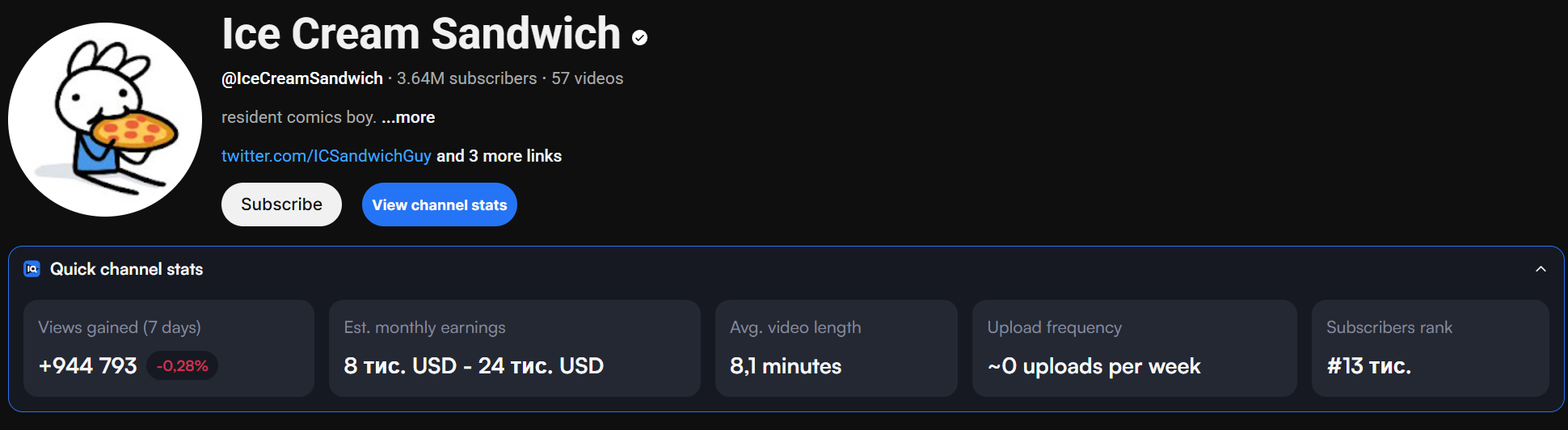 El centro principal de Ice Cream Sandwich es YouTube, pero también está presente en TikTok, Instagram y Twitter. Dado que su canal se especializa en animación (y son, sinceramente, largas de hacer), a menudo realiza acuerdos de marcas en Instagram y Twitter.
