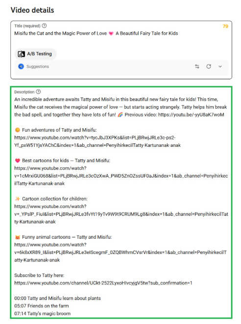Se você quer expandir um canal infantil no YouTube em 2026, otimize tudo. Títulos, miniaturas, descrições, tags, telas finais... cada elemento influencia na forma como seu conteúdo se propaga e em quantas famílias o YouTube o recomenda.