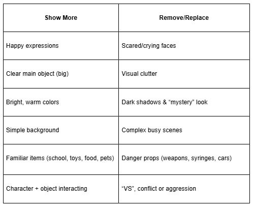 Então a fórmula vencedora é: 1 rosto feliz + 1 ação clara + 1 item que mostra o tema (Sorriso → O que está acontecendo → Por que assistir).