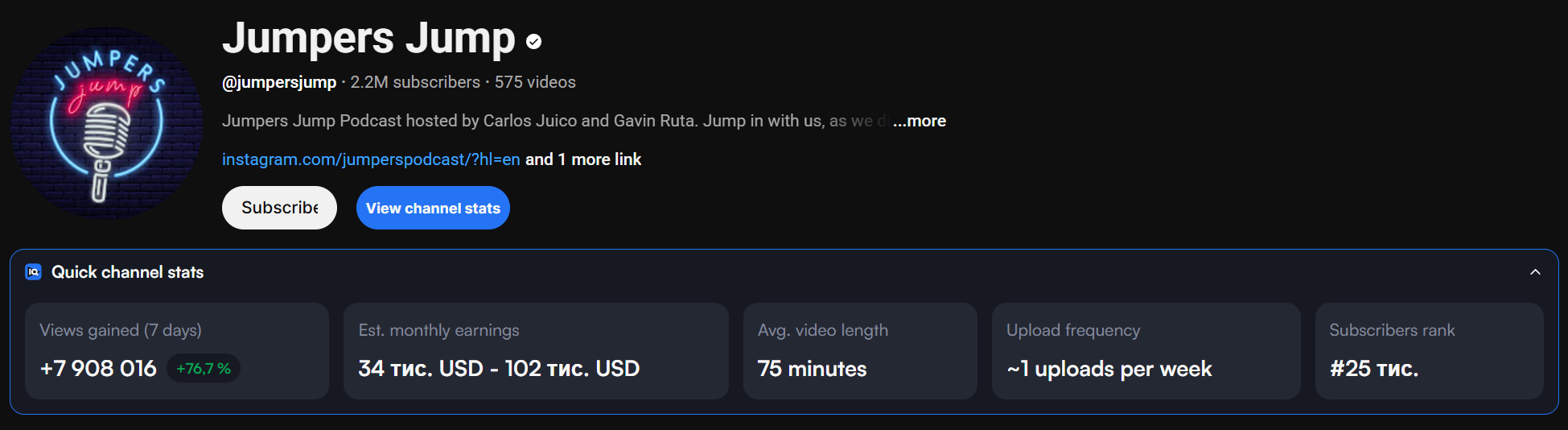 Подкаст Jumpers Jump Podcast швидко став улюбленцем фанатів. Ведучі Карлос та Ґевін, подкаст глибоко занурюється у дивний, веселий і часто химерний бік життя. Їхній розмовний стиль відчувається як підслуховування розмови друзів, і саме ця відношуваність робить шоу таким привабливим.