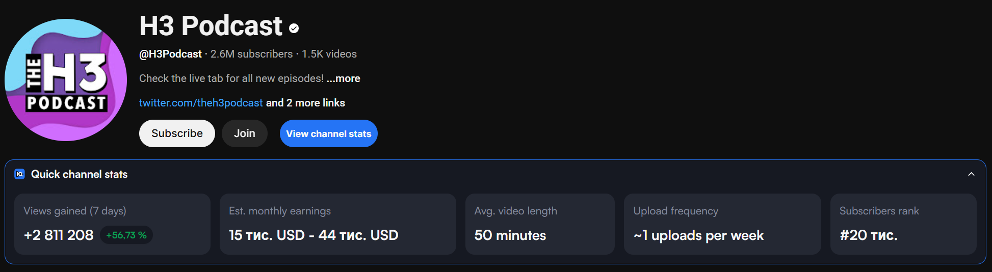 H3 подкаст має щось особливе для них: фан-базу, яка дивиться кожен епізод. Як вони це досягли? Ну, це трохи пов’язано з розважальною та думкою ведучого. Більше того, гості його шоу зазвичай дуже розважальні люди у своїх сферах.