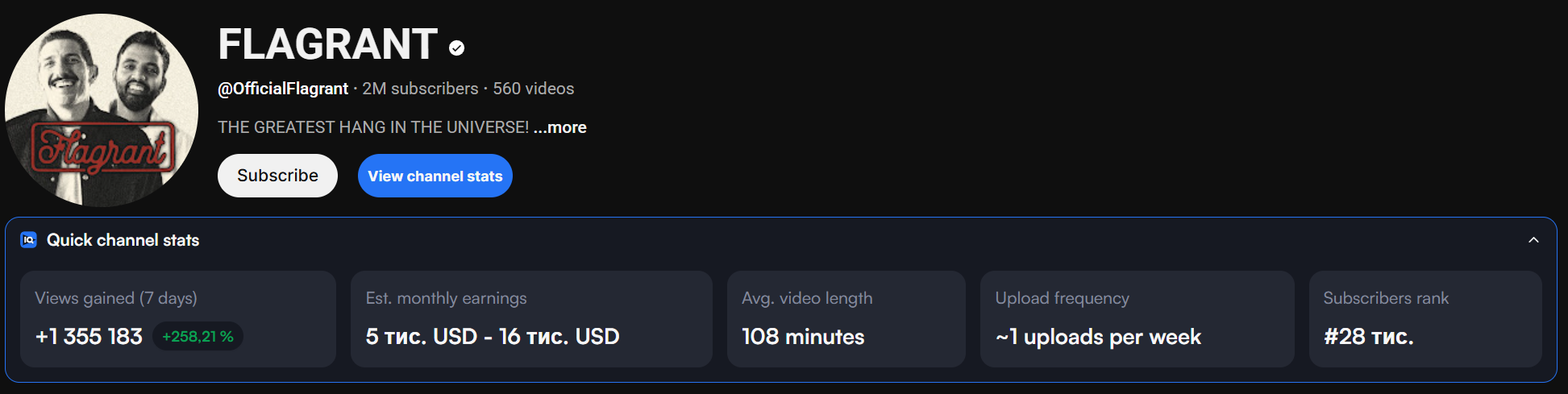 Flagrant подкаст успіх завдяки пропозиції чогось рідкісного на YouTube або на інших соціальних медіа платформах, а саме: розмови без фільтрів. Ось чому вони так популярні. Давайте подивимося на цифри: