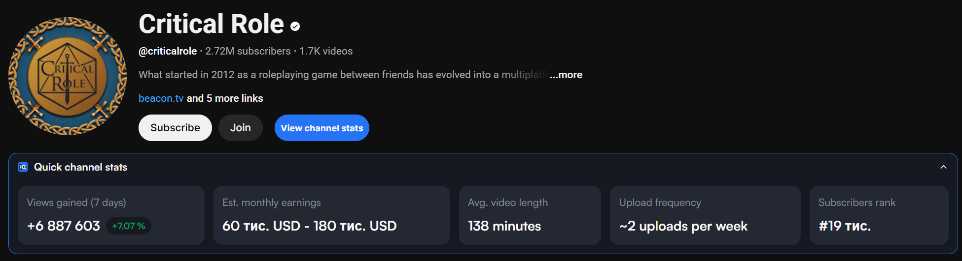 Торбек, Чаклз, Бітсі і ще багато персонажів, що перетворилися на смішні меми, прийшли з цього подкасту. Їх шарм незаперечний, але вони схоже структурують свої епізоди на інші подкасти D&D, тому наша порада така: навіть якщо ваш ніша насичена, знайдіть щось, що допоможе вам виділитися і привернути увагу глядача. Дивіться уважно: