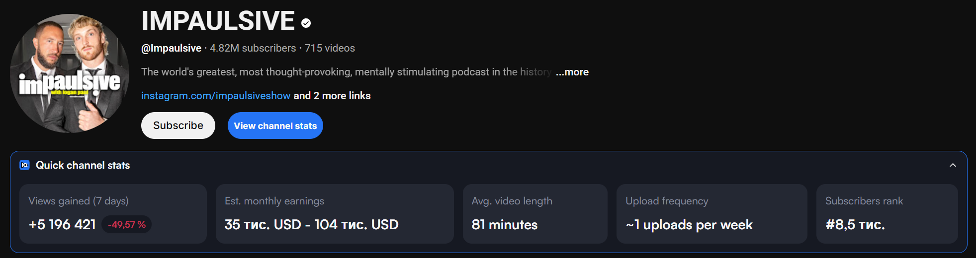 Логан Пол відомий своїми суперечностями, і раніше весь його контент був більше орієнтований на підліткову аудиторію. З іншого боку, подкаст Impaulsive обговорює більш глибокі (дорослі) теми з популярними людьми. Одного разу Логан Пол навіть запросив туди Трампа, що безперечно привертає увагу.