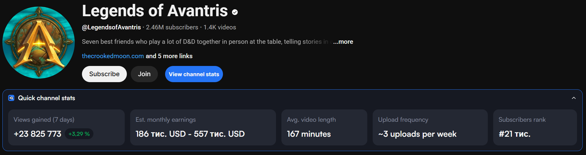 Згадаємо ще одного велетня D&D, який став популярним завдяки коротким анімованим кліпам у їхніх Шортах та TikTok. The Legends of Avantris - це чистий розважальний канал з безліччю подкастів, де показуються різні ігри. Кожен епізод триває приблизно 2-3 години. Але основна перевага в тому, що атмосфера там більш розслаблена та невимушена. Там набагато більше жартів, і багато з них такі ж безглузді, як ті, якими ви можете обмінюватися з друзями.