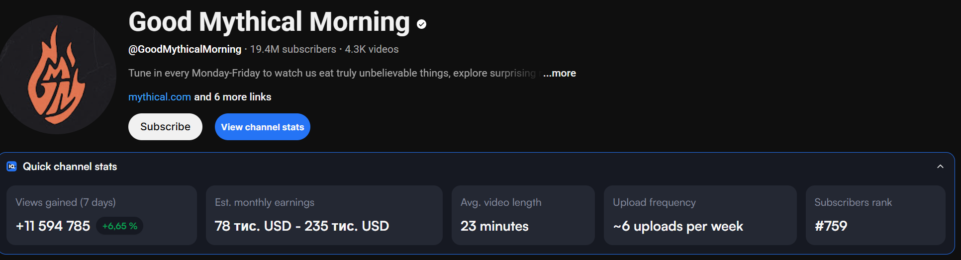 Good Mythical Morning (GMM), ведучі Ретт Маклафлін та Лінк Ніл, стали знаковими у просторі розваг на YouTube. Цей динамічний дует створив шоу, яке відчувається як запрошення в їх вітальню, де кожен епізод наповнений гумором, викликами та здоровою дозою цікавості. GMM є одним з найдовгоіснуючих та найулюбленіших шоу на YouTube, відомим своїм легким, але вельми творчим контентом.