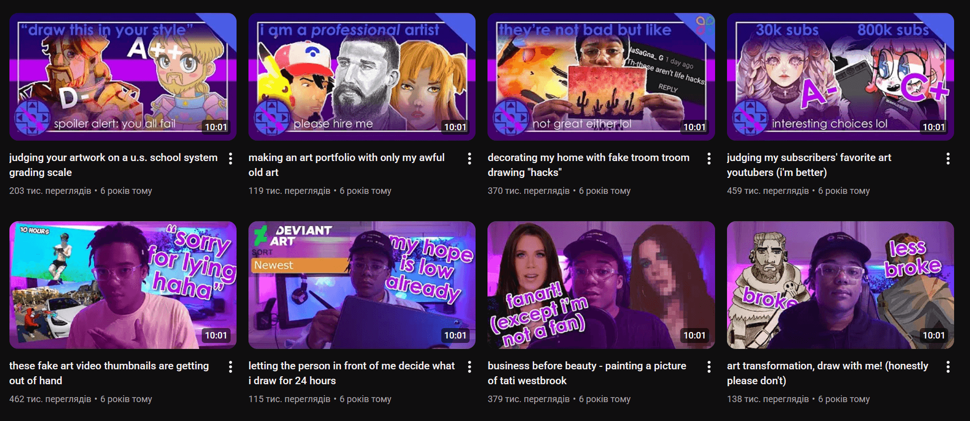 Як перетворити канал без обличчя з мистецтвом на каналу з відео-есеями-коментарями без повної втрати аудиторії? Подивіться на канал D’Angelo Wallace. На початку своєї творчої діяльності вони були переважно мистецьким каналом.